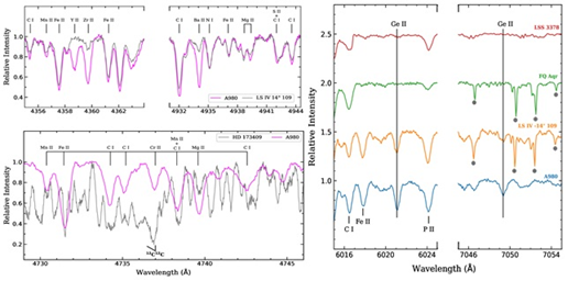 - Ge II रेखाओं (सिंगल-आयनाइज्ड जर्मेनियम) की स्पेक्ट्रल पहचान A980 में पहली बार हुई है।