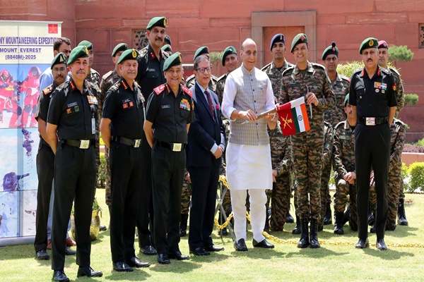 रक्षा मंत्री राजनाथ सिंह ने गुरुवार को राष्ट्रीय कैडेट कोर (एनसीसी) के उस पर्वतारोहण दल को सम्मानित किया, जिसने 18 मई 2025 को माउंट एवरेस्ट पर सफल चढ़ाई की। इस साहसी दल में औसतन 19 वर्ष की आयु के पांच लड़के और पांच लड़कियां शामिल थीं।